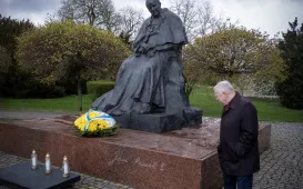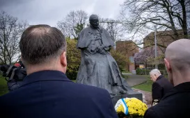 2 kwietnia 2024 r. przedstawiciele samorządu miejskiego z zastępcą prezydenta Zbigniewem Fiderewiczem złożyli kwiaty pod pomnikiem papieża, św. Jana Pawła II, w 19. rocznicę jego śmierci. Fot. Wojtek SzabelskiBulwar Filadelfijski, 30.03.2024 r.