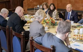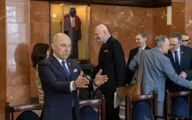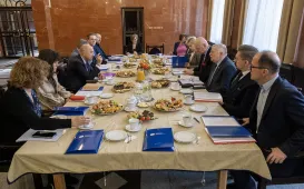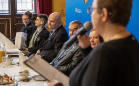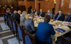 20 lutego 2024 r. władze samorządowe Torunia spotkały się w Collegium Maximum z władzami rektorskimi Uniwersytetu Mikołaja Kopernika. Tematem rozmów była szeroko pojęta współpraca miasta z uczelnią i społecznością uniwersytecką. Fot. Wojtek SzabelskiZakończyliśmy obchody Roku Mikołaja Kopernika