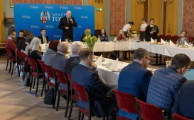 Przedstawiciele firm marketingowych spotkali się 22 lutego 2024 r. o poranku z Prezydentem Michałem Zaleskim w Toruńskim Inkubatorze Technologicznym, żeby porozmawiać o możliwościach rozwoju oraz podzielić się swoimi spostrzeżeniami i doświadczeniami w prowadzeniu biznesu w Toruniu. Fot. Sławomir KowalskiToruń miejscem debaty o Afryce