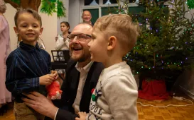 18 grudnia 2023 rok w placówce opiekuńczo-wychowawczej "Młody Las" odbyło się świąteczne spotkanie. Wziął w nim udział zastępca Prezydenta Miasta Torunia Paweł Gulewski. / fot. Agnieszka Bielecka