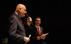 Po raz szesnasty w Baju Pomorskim odbyły się (21 grudnia 2023 r.) jasełka organizowane przez Fundację Światło. Wstęp możliwy był dzięki specjalnym biletom-cegiełkom. Podczas wydarzenia prezydent Torunia Michał Zaleski podziękował organizatorom i złożył życzenia świąteczno-noworoczne. Fot. Wojtek Szabelski