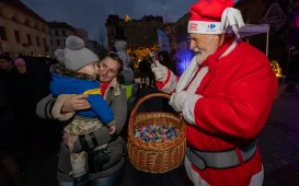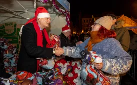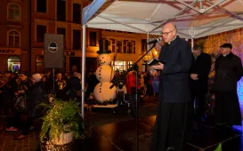 Prezydent Torunia Michał Zaleski oraz duchowni kilku kościołów, w tym rzymsko-katolickiego, grecko-katolickiego, prawosławnego i ewangelicko-augsburskiego złożyli wszystkim przybyłym na plenerową Wigilię Miejską (20 grudnia 2023 r.) bożonarodzeniowe życzenia.
