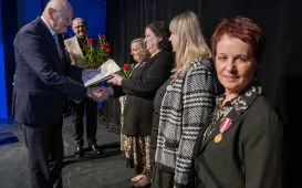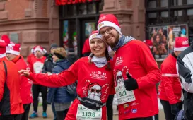 Podczas Gali Jubileuszowej z okazji 100. rocznicy powstania Książnicy Kopernikańskiej 4 grudnia 2023 r. w Sali Kameralnej Centrum Kulturalno-Kongresowego Jordanki wręczono medale, nagrody i wyróżnienia. - Wszyscy doceniamy w Toruniu naukowy, ale i także kulturotwórczy profil Książnicy oraz nieprzerwaną wierność dziedzictwu kopernikańskiemu – widoczną nie tylko w oficjalnej nazwie biblioteki - mówił prezydent Michał Zaleski. Fot. Wojtek Szabelski21. Festiwal Biegów Świętych Mikołajów, 3.12.2023 r.