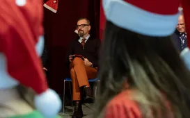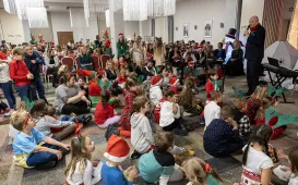 5 grudnia 2023 r. w Zespole Szkół nr 19 odbyło się VII Integracyjne Spotkanie Mikołajkowe, w którym udział wzięły toruńskie szkoły i przedszkola. Życzenia złożył dzieciom zastępca prezydenta miasta Adrian Mól. Fot. Agnieszka BieleckaJubileusz Magdaleny Cynk