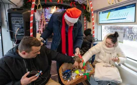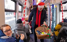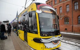 6 grudnia 2023 roku w Toruniu rozpoczął kursowanie tramwaj świąteczny. W inauguracyjnym przejeździen na północ Torunia wziął udział Prezydent Michał Zaleski. / fot. Agnieszka BieleckaTablica ku pamięci toruńskiej olimpijki