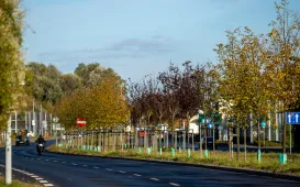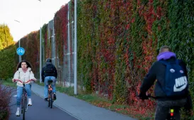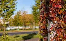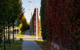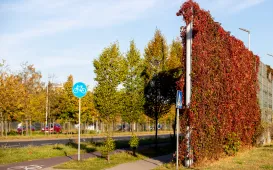 Jesienią Trasa Średnicowa wygląda szczególnie pięknie. Zarówno drzewa rosnące w pasie rozdziału, jak i pnącza wijące się na ekranach przybierają pełne uroku złoto-czerwone barwy. Fot. Agnieszka Bielecka