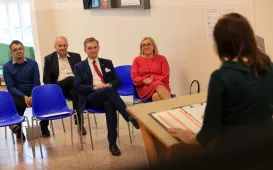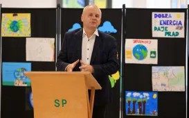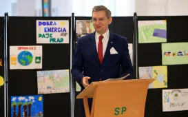 W Szkole Podstawowej nr 28 dzięki dofinansowaniu z Wojewódzkiego Funduszu Ochrony Środowiska i Gospodarki Wodnej otwarta została ekopracownia poszerzająca wiedzę uczniów na temat OZE. W oficjalnym otwarciu 27 października 2023 r. udział wziął m.in. zastępca prezydenta Adrian Mól. Fot. Sławomir Kowalski