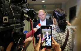 12 października 2023 r. w Urzędzie Marszałkowskim Województwa Kujawsko-Pomorskiego zostało podpisane Porozumienie samorządowe dotyczącze uruchomienia nowego połączenia kolejowego na trasie Toruń-Czernikowo. W wydarzeniu wziął udział Prezydent Torunia Michał Zaleski. / fot. Sławomir Kowalski