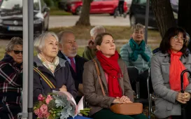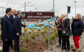 Skwer przy skrzyżowaniu Trasy Raczkiewicza, Szosy Chełmińskiej i ul. Wybickiego nosi od 13 października 2023 r. nazwę placu Zofii i Karola Górskich. W uroczystości odsłonięcia tablicy uczestniczyły krewne patronów placu - synowa Joanna Górska i wnuczka Izabela Górska-Wirzewska. Obecni byli prezydent Torunia Michał Zaleski i przewodniczący Rady Miasta Torunia Marcin Czyżniewski, a także przedstawiciele Klubu Inteligencji Katolickiej, Uniwersytetu Mikołaja Kopernika i Towarzystwa Miłośników Torunia. Fot. Agnieszka Bielecka
