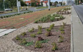 Mimo, że kalendarzowo mamy już jesień, kwietne łąki wzdłuż nowego torowiska w ciągu ul. Watzenrodego znowu w kwiatach. Tym razem zakwitły na żółto-pomarańczowo. Warto przejechać się nową trasą chociażby dla tego widoku. W pozostałych rejonach zakończonej niedawno inwestycji także nie brakuje zieleni. / fot. MZK w ToruniuW Toruniu o firmach przyszłości