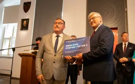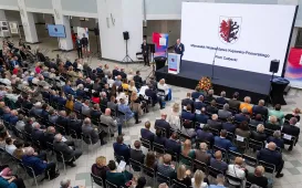 3 października 2023 r. odbyła się uroczysta inauguracja roku akademickiego na Uniwersytecie WSB Merito, podczas której uczelnia uzyskała sztandar. Podczas uroczystości prezydent Michał Zaleski i radna Dagmara Tuszyńska uhonorowali uczelnię Medalem Pamiątkowym Roku Mikołaja Kopernika. Fot. Agnieszka BieleckaWręczenie promes na dotacje w II edycji Rządowego Programu Odbudowy Zabytków