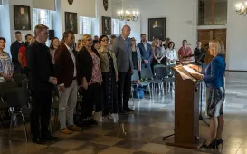 25 września 2023 r. w Ratuszu Staromiejskim prezydent Michał Zaleski wręczył akty awansu na nauczycieli mianowanych 109 toruńskim pedagogom. Fot. Wojtek Szabelski
