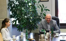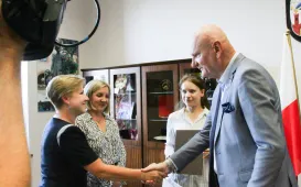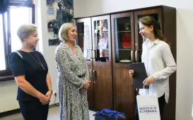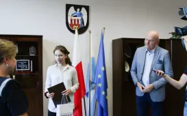 Agnieszka Peret, absolwentka Uniwersyteckiego Liceum Ogólnokształcącego w Toruniu, została laureatka konkursu "Matura na 100 procent". 28 września 2023 roku spotkał się z nią Prezydent Torunia Michał Zaleski. fot. Paula Gałązka