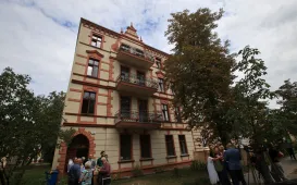 W wyremontowanej kamienicy przy ul. Bydgoskiej 74 powstało 12 mieszkań chronionych treningowych. Pierwsi lokatorzy odebrali klucze z rąk prezydenta Michał Zaleskiego 24 sierpnia 2023 r. Fot. Sławomir Kowalski