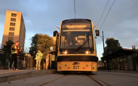 3 sierpnia 2023 roku odbył się pierwszy przejazd techniczny po całej nowej linii tramwajowej. W czwartkowy wieczór tramwaj przejechał trasę od pl. NOT do nowej pętli przy ul. Heweliusza. / fot. Sławomir KowalskiToruńska opieka przedszkolna 2023