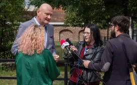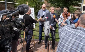 Toruńskim przedszkolom - ich liczbie, ofercie edukacyjnej, rekrutacji i wakacyjnych remontach w tych placówkach - była poświęcona konferencja prasowa w Urzędzie Miasta Torunia 3 sierpnia 2023 r. z udziałem prezydenta Torunia Michała Zaleskiego i dyrektorki Wydziału Edukacji Anny Łukaszewskiej. Fot. Małgorzata LitwinTorunianie na warszawskich obchodach powstańczych