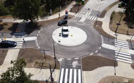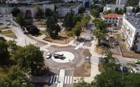 Miesiąc przed umownym terminem zakończyła się przebudowa skrzyżowania Grudziądzka-PCK. W tym miejscu powstało rondo. W ramach prac połączono istniejące chodniki z rondem i dyslokowano lampy tak, aby oświetlały nowo wyznaczone przejścia dla pieszych. Fot. Sławomir KowalskiOtwarcie MŚ w Akrobacji Szybowcowej, 26.07.2023 r.
