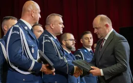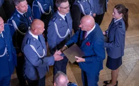 Uroczysty apel z okazji obchodów Święta Policji i 104. rocznicy powołania policji państwowej, który odbył się w piątek 28 lipca 2023 r. w Dworze Artusa był okazją do uhonorowania wszystkich, którzy w sposób szczególny przyczyniają się do efektywnej i skutecznej pracy policji na rzecz bezpieczeństwa mieszkańców Torunia i powiatu toruńskiego. Fot. Wojtek SzabelskiSkrzyżowanie Grudziądzka - PCK po przebudowie
