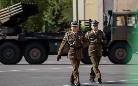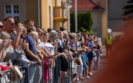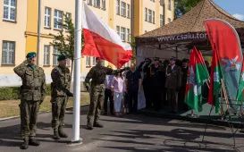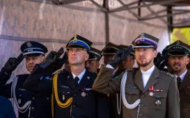 Zgodnie z ceremoniałem wojskowym i przy akompaniamencie Orkiestry Wojskowej z Torunia, w sobotę 29 lipca 2023 r. na placu apelowym Centrum Szkolenia Artylerii i Uzbrojenia w Toruniu przysięgę złożyło 54 ochotników projektu "Trenuj jak żołnierz". Fot. Agnieszka BieleckaToruńscy policjanci obchodzili swoje święto