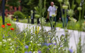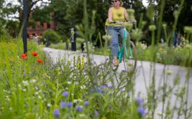 Na skwerze przy Alei Solidarności i Muzeum Etnograficznym można podziwiać łąki kwietne, a przy CKK Jordanki - pięknie kwitnące róże. Tak ukwiecony jest teren o nazwie Zielona Brama Gotyckiej Starówki. Fot. Agnieszka Bielecka
