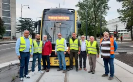 We wtorek, 11 lipca 2023 roku o godzinie 5:00 na Szosie Chełmińskiej pojawił się tramwaj. W godzinach porannych odbył się pierwszy przejazd techniczny nową linią tramwajową. W wydarzeniu wziął udział Zastępca Prezydenta Torunia Zbigniew Fiderewicz. / fot. MZK w Toruniu