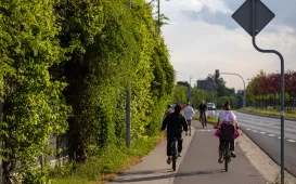 Trasa Prezydenta Władysława Raczkiewicza zachwyca bujną zielenią - to efekt nasadzeń sukcesywnie czynionych od początku powstania arterii. Wzdłuż „średnicówki” rośnie około 700 drzew, blisko 600 pnączy, a także tysiące krzewów i traw ozdobnych. Nasadzenia trwały etapami, a w rezultacie osiągnięto efekt zielonego szlaku, przy którym znajdują się także chodnik i droga rowerowa, chętnie uczęszczane przez torunian. Fot. Agnieszka Bielecka