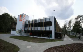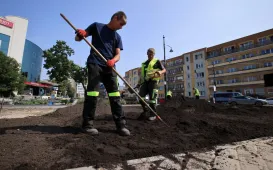 Kończą się prace na toruńskich parkingach Park&Ride, które znajdują się przy ul. Olimpijskiej 42 oraz Dziewulskiego 38. Oba obiekty mają w sumie 419 miejsc parkingowych, w tym 8 z ładowarką aut elektrycznych. / fot. Sławomir KowalskiNasadzenia zieleni przy Szosie Chełmińskiej