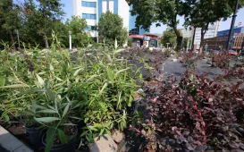 Trwają nasadzenia zieleni wzdłuż nowej linii tramwajowej na północ Torunia. W pasach wzdłuż jezdni, chodników i dróg rowerowych sadzone są drzewa, krzewy i byliny. Na nowo zostal urządzony skwer przy Cinema City i przy al. 700-lecia Torunia, gdzie zasadzono m.in. budleje, berberysy, dzwonki karpackie, rozchodniki i lawendę. Fot. Sławomir KowalskiZieleń przy Trasie Prezydenta Władysława Raczkiewicza