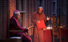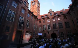 8 lipca 2023 r. o godz. 21:00 w scenerii dziedzińca Ratusza Staromiejskiego pokazany został spektakl pt. "Pięć dni z życia Kopernika", którego twórcą jest Dariusz Bereski. Spektakl wystawiony został w związku z 550. rocznicą urodzin astronoma". Fot. Sławomir KowalskiWernisaż Władysława Kozioła i otwarcie nowej Galerii Dworu Artusa