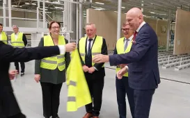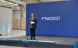 Klara Geywitz - ministra mieszkalnictwa, rozwoju miast i budownictwa Republiki Federalnej Niemiec odwiedziła 30 czerwca 2023 r. fabrykę MOD 21 w podtoruńskim Ostaszewie, w której toruńska firma ERBUD od listopada 2022 r. produkuje drewniane budynki modułowe, przede wszystkim na rynek niemiecki. Na zaproszenie zarządu fabryki gościem spotkania z panią minister był prezydent Torunia Michał Zaleski. Fot. Łukasz SzarszewskiList intencyjny w sprawie poprawy efektywności energetycznej