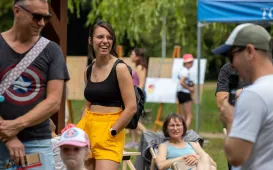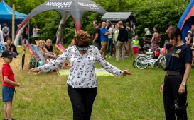 Teatr w Młodzieżowym Domu Kultury założyła Joanna Miś Fudali w 1993 roku i oddała mu całe swoje serce. - Proszę przyjąć przede wszystkim życzenia, aby Pani ani na chwilę nie ustawała w tym pięknie, którym Pani obdarza nas wszystkich - pięknie tworzenia zespołu Teatr Tańca Akro - powiedział na jubileuszowej uroczystości prezydent Torunia Michał Zaleski. Uroczystość odbyła się w sobotę 17 czerwca 2023 r. w siedzibie Teatru Baj Pomorski. Fot. Wojtek SzabelskiBawili się na festynie rodzinno-parafialnym