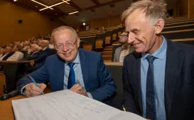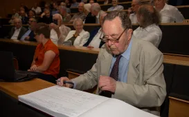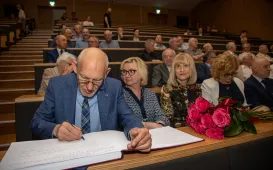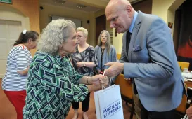 Wybitny fizyk oraz pierwszy demokratycznie wybrany rektor UMK, prof. Stanisław Dembiński, podczas uroczystości z okazji swoich 90. urodzin odebrał z rąk prezydenta Michała Zaleskiego medal Thorunium. Dziewięćdziesiąte urodziny prof. Stanisława Dembińskiego zostały uczczone Kolokwium Fizycznym, zorganizowanym przez Instytut Fizyki UMK we współpracy z Polskim Towarzystwem Fizycznym Oddział Toruński. Uroczyste spotkanie odbyło się 12 czerwca 2023 r. w Audytorium Aleksandra Jabłońskiego na Wydziale Fizyki, Astronomii i Informatyki Stosowanej. Fot. Agnieszka BieleckaVII Toruńska Seniorada, 11.06.2023 r.