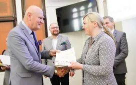 W Urzędzie Miasta Torunia gościła 13 czerwca 2023 r. delegacja 13 przedstawicieli teksańskiego obszaru metropolitalnego Bryan-College Station, który współpracuje z województwem kujawsko-pomorskim. Są pod wrażeniem Torunia i chca zaciesnic z nami kontakty gospodarcze, kulturalne, turystyczne i edukacyjne. Fot. Małgorzata LitwinAwanse pracowników UMT, 13.06.2023 r.