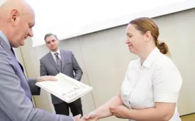13 czerwca 2023 roku 36 pracowników Urzędu Miasta Torunia odebrało z rąk prezydenta akty nadania awansu zawodowego. / fot. Paula GałązkaThorunium dla prof. Stanisława Dembińskiego