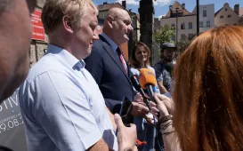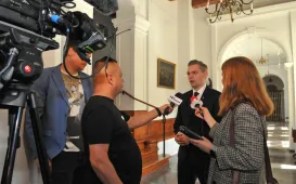 W Ratuszu Staromiejskim 29 maja 2023 r. odbyła się konferencja poświęcona bezpieczeństwu energetycznemu i cyberbezpieczeństwu. Jej gośćmi byli m.in. minister cyfryzacji, Janusz Cieszyński, prezes Rządowego Centrum Legislacji Krzysztof Szczucki, posłanka Jolanta Borowiak i jako gospodarz spotkania - wojewoda Mikołaj Bogdanowicz. W imieniu miasta gości powitał prezydent Michał Zaleski. Fot. Małgorzata LitwinPrezydent spotkał się z rodzinami zastępczymi