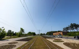 Gotowe jest już torowisko i sieć trakcyjna na znacznej części nowej linii tramwajowej od przejazdu kolejowo-tramwajowego, wzdłuż ul. Polnej, Ugorów i Watzenrodego do ronda Strobanda. Na pozostałych odcinkach prace jeszcze trwają, ale zbliżają się do ostatniej prostej. Końcówka maja 2023 r. to frezowanie na ul. Legionów i kwitnące łąki kwietne na ul. Watzentodego. Fot. W. Bujak/TV ToruńProf. Polak z Medalem Honorowym "Thorunium"