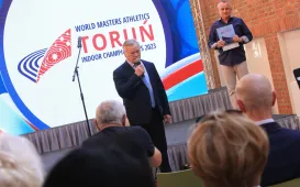 11 maja 2023 roku odbyło się spotkanie podsumowujące 9. Halowe Mistrzostwa Świata w Lekkiej Atletyce Masters. W wydarzeniu wziął udział Prezydent Torunia Michał Zaleski, jego zastępca Zbigniew Fiderewicz oraz Mariola Soczyńska, dyrektor Wydziału Sportu i Rekreacji UM Torunia. / fot. Sławomir Kowalski65-lecie Młodzieżowej Spółdzielni Mieszkaniowej