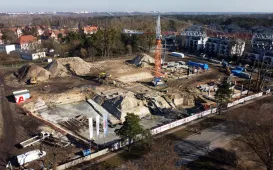 Przy ul. Strzałowej powstaje nowoczesny obiekt, złożony ze szkoły, przedszkola, ogólnodostępnej biblioteki oraz zaplecza sportowo-rekreacyjnego. Prace mają potrwać do końca listopada 2024 r. Zdj. Sławomir KowalskiUmowa w sprawie dodatkowych patroli policyjnych