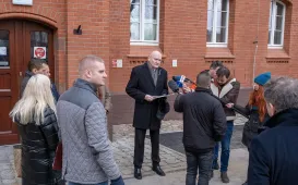 17 lutego 2023 r. przedstawiciele Miasta złożyli kwiaty i zapalili znicze pod pomnikiem Sybiraków, odsłoniętym w 2016 r. przy VI Liceum Ogólnokształcącym im. Zesłańców Sybiru na ul. Wojska Polskiego 47a w Toruniu. Zdj. Sławomir KowalskiSpotkanie z Wojciechem Orlińskim