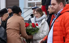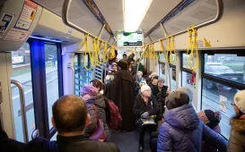 17 lutego 2023 roku w tramwaju o numeru bocznym numer 318, który kursował na trasie linii nr 1, można było spotkać nietypowego gościa. Ciekawostki o Toruniu i swoim życiu opowiadał patron tramwaju - Mikołaj Kopernik. / fot. Paula GałązkaToruń uczcił 83. rocznicę zsyłek na Sybir