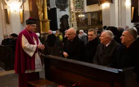 16 lutego 2023 roku w Katedrze śś. Janów w Toruniu odbyła się uroczysta msza święta w intencji ks. Sławomira Odera, który został mianowany biskupem diecezji gliwickiej. W nabożeństwie, któremu przewnodniczył biskup toruński Wiesław Śmigiel, wziął udział Prezydent Michał Zaleski oraz jego zastępcy - Zbigniew Fiderewicz i Adrian Mól. / fot. Paula GałązkaMedale dla krzewicieli tradycji kopernikańskiej