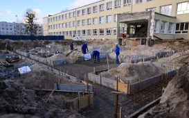Szkoła podstawowa nr 11 przy ul. Gagarina będzie miała salę gimnastyczną z prawdziwego zdarzenia. Od listopada 2022 r. trwają prace związane z budową, która zakończyć ma się w grudniu 2023 r. Fot. Sławomir Kowalski55-lecie Dziennika Toruńskiego "Nowości"