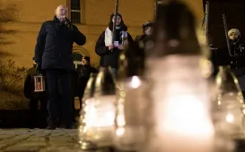 O północy w nocy z 12 na 13 grudnia 2022 r. przedstawiciele samorządu, opzycji antykomunistycznej, harcerstwa, złożyli kwiaty pod tablicą upamiętniającą patriotyczną manifestację, która znajduje się na kościele akademickim. Pod tablicą złożono kwiaty i zapalono znicze. Fot. Lech KamińskiZielone kreacje Torunia ukazane jesienną porą - galeria nagrodzonych