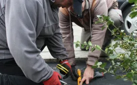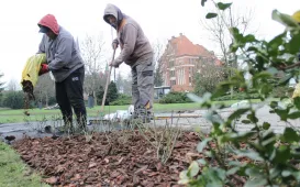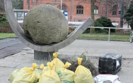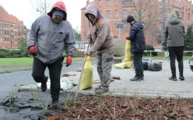 Przy pomniku Dar Miasta Czadca trwa nasadzanie nowych kwiatów - około 300 sztuk róży okrywowej. Prace wykonuje firma EVENT Management Rafał Kortas z Bydgoszczy. / fot. Adam ZakrzewskiPowstają parki kieszonkowe