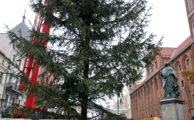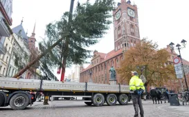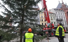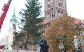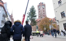W środę 23 listopada 2022 r. na Rynek Staromiejski w Toruniu wjechała tradycyjna choinka. Okazałe, 15-metrowe drzewko pochodzi z Nadleśnictwa Golub Dobrzyń - Leśnictwo Cieszyny. Wybrał je leśniczy Hubert Mazurek, przywiozła do Torunia firma eM-Tech, a osadzili na miejscu pracownicy z firmy Sybilscy. O iluminację zadba Urząd Miasta Torunia. Fot. Małgorzata Litwin