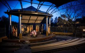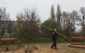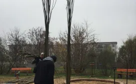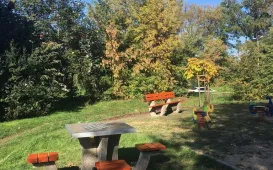 „Uroczy zakątek” to plac zabaw znajdujący się u szczytu bloku przy ul. Andersa 79, który został odmieniony w ramach zadania z budżetu obywatelskiego. W efekcie prac jego centralnym punktem stała się tzw. zielona altana z wierzby, w której środku ustawiono dwie ławki. Fot. Wydział Środowiska i Ekologii UMTSpotkanie z olimpijczykiem Tadeuszem Tulidzińskim