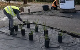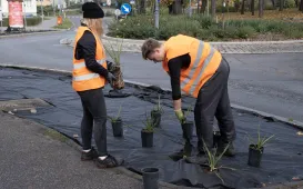 3 i 4 listopada 2022 r. realizowano zadanie z budżetu obywatelskiego na rok 2022 pn. „Dość monotonii! Twórzmy roślinne dywany rozweselające betonowe otoczenie” polegające na sadzeniu roślin cebulowych i polnych w pasie rozdzielającym ul. Szosa Chełmińska. Już wiosną 2023 roku pojawi się tam barwny dywan roślinny. Fot. Adam ZakrzewskiUmowa na salę gimnastyczną dla SP11
