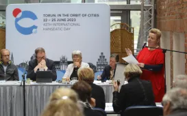 W ramach wizyty członków Komisji Hanzy 22 października 2022 r. w MCSM miały miejsce obrady dotyczące m.in. przyszłorocznego Międzynarodowego Zjazdu Miast Nowej Hanzy, który odbędzie się w czerwcu 2023 r. w Toruniu. W obradach wziłą udział zastępca prezydenta Paweł Gulewski. Fot. Adam Zakrzewski