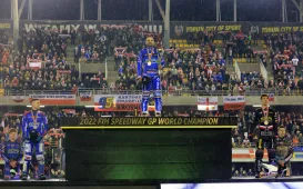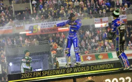 Bartosz Zmarzlik mistrzem świata, Leon Madsen wicemistrzem, a Maciej Janowski brązowym medalistą w Toruniu! Wrocławianin w ostatnim turnieju FIM Speedway Grand Prix na Motoarenie sięgnął po pierwszy krążek IMŚ w karierze. Fot. Sławomir Kowalski