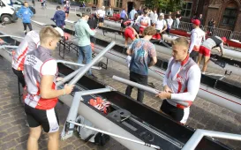 W niedzielę 25 września 2022 r. na Rynku Staromiejskim odbyła się czwarta edycja nietypowego maratonu wioślarskiego ósemek Run&Row. Zawody składają się z trzech konkurencji. Najpierw zawodnicy biegną całą trasę (3 km) ze swoją ważącą 96 kg i mierzącą 20 metrów łodzią spod ratusza ulicami Szeroką i Mostową, Bulwarem Filadelfijskim aż do Przystani Toruń. W zatoczce zwodują łódź, rozpoczynając drugą konkurencję: muszą przewiosłować mierzącą około 6 km pętlę na toruńskiej Wiśle. Następnie ponownie biegną z łodzią na starówkę, aby całą rywalizację zakończyć sztafetą na ergometrze wioślarskim. Fot...